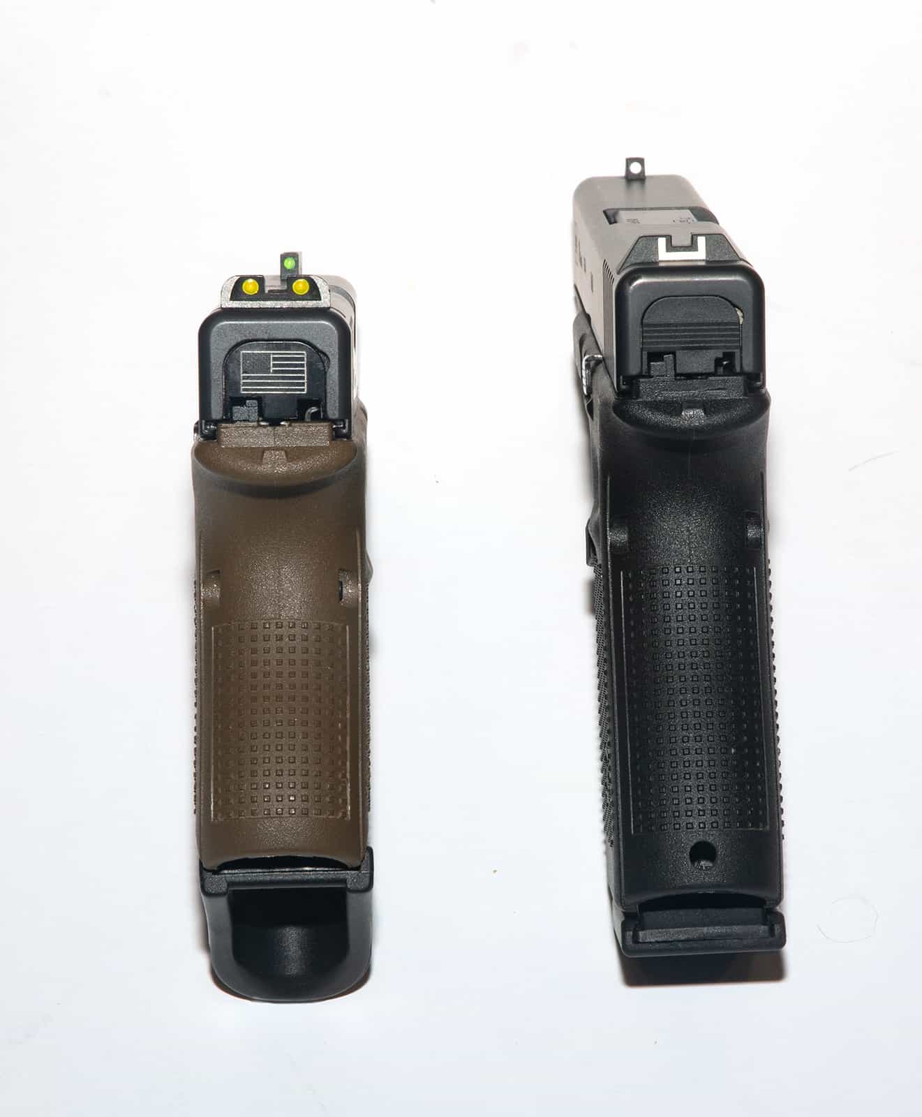 On the range, the larger frame of the Glock 19 vs the Glock 26 made a big difference when it came to holding on to the gun. The Glock 26 is definitely smaller and much more difficult to hold onto, especially during rapid fire. The shorter frame meant that we couldn’t get our pinkies onto the gun. This, in turn, meant the Glock 26 had more felt recoil and muzzle flip under rapid fire than the Glock 19 during rapid-fire exercises such as the Bill Drill.