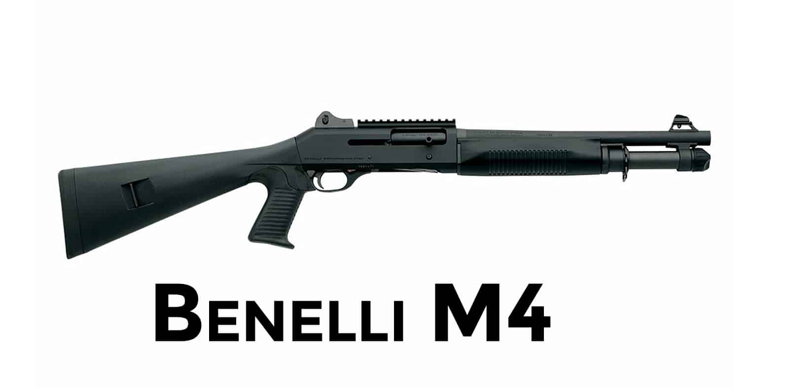 Benelli M4. MSRP: $1999 and up. Another semi-automatic shotgun, a variant of the M4 is in use right now by the U.S. military as the M1014 Joint Service Combat Shotgun. The patented gas operation of the M4 adjusts for shell size, allowing the gun to cycle low-power/reduced recoil shells as easily as it handles full-strength buckshot and slugs.