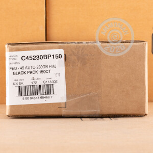 45 ACP FEDERAL BLACK PACK 230 GRAIN FMJ (150 ROUNDS)No B.S you get what you ordered. This is the go to place for me, I highly recommend them . The shipping was blazing fast . New firearm New ammo Just waiting for the shoulder holster keep up your good service.(01/05/2026) -